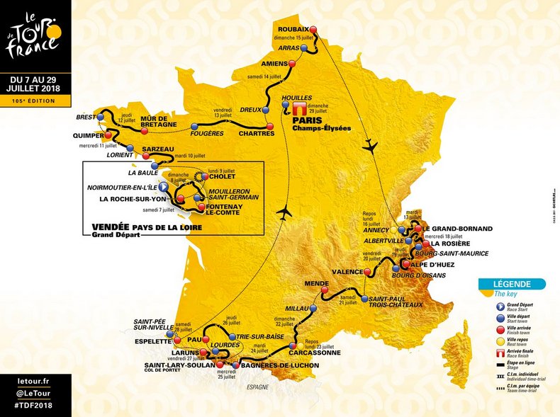 #Actu#TDF2018#Twittcyclos Voici le parcours du Tour de France