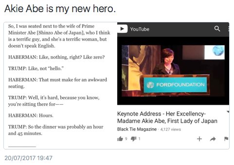 akie abe was an honorary principal of an ultra right wing school and is fucking racist but ok sure lolpic.twitter.com/AMrB34Y38j