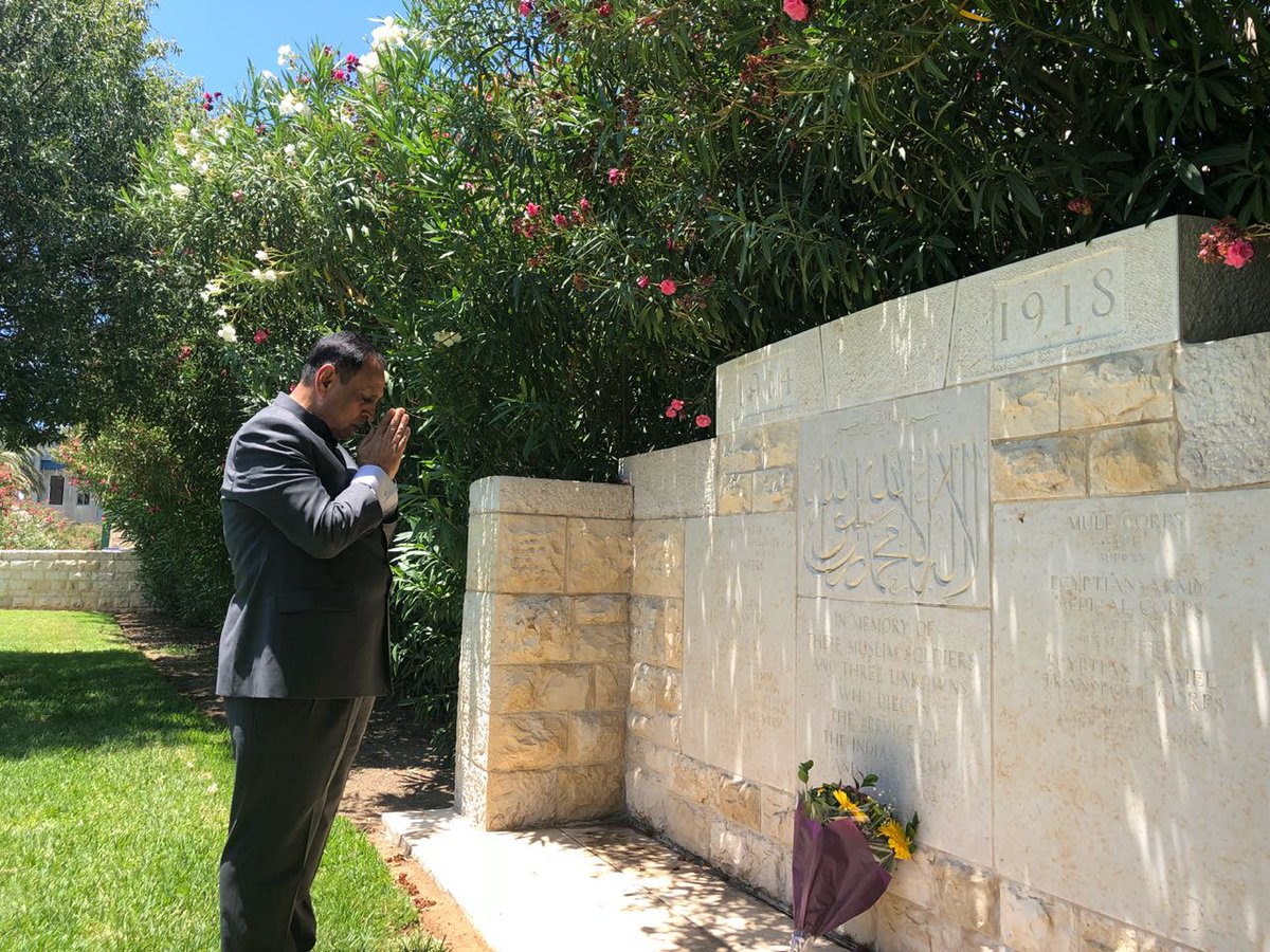 #GujCMinIsrael,@vijayrupanibjp paid homage to Indian soldiers who laid down their lives during World War-1 at the Cemetery at Haifa. The visit coincides with the centenary year of the great battle of Haifa that marks the enduring bond between India & Israelpic.twitter.com/qkJr5TEJA2