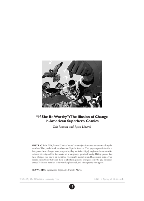 Top Ten INKS articles downloaded in 2018: #2 "If She Be Worthy": The Illusion of Change in American Superhero Comics Zak Roman -- Ryan Lizard https://buff.ly/2yc3Pt8