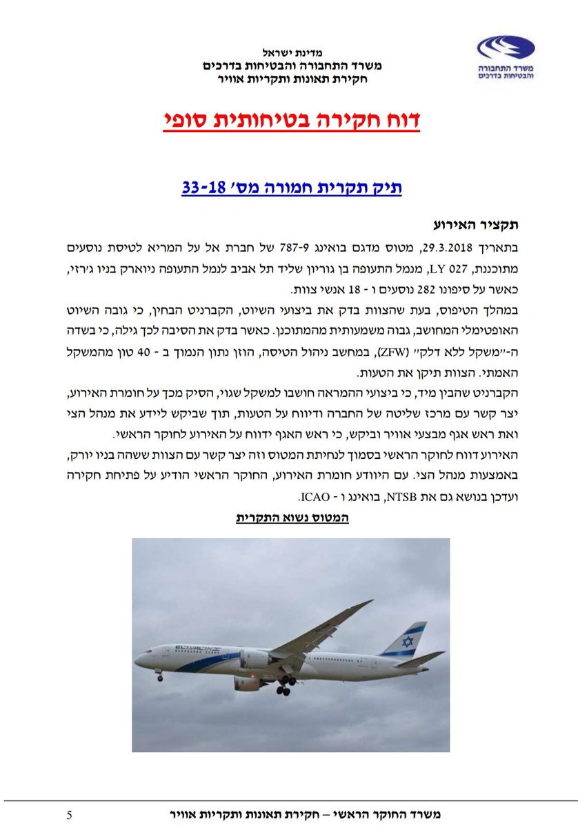 החוקר הראשי פרסם היום (ב') את מסקנותיו מטיסת אל-על מת"א לניוארק (LY27), בליל ה-29 במרץ האחרון, במהלכה הוזן משקל שגוי ב-40 טון למחשב הטיסה. המטוס התקשה להתנתק מהקרקע בהמראה וגובה שיוט היה בגובה רב מידי. על המטוס היו 282 נוסעים ו-18 אנשי צוות.