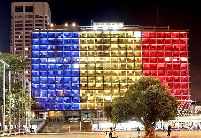 's city hall was illuminated in the falg as a tribute to the cellebrations of 100 years since the great unification🇷🇴 🇮🇱.