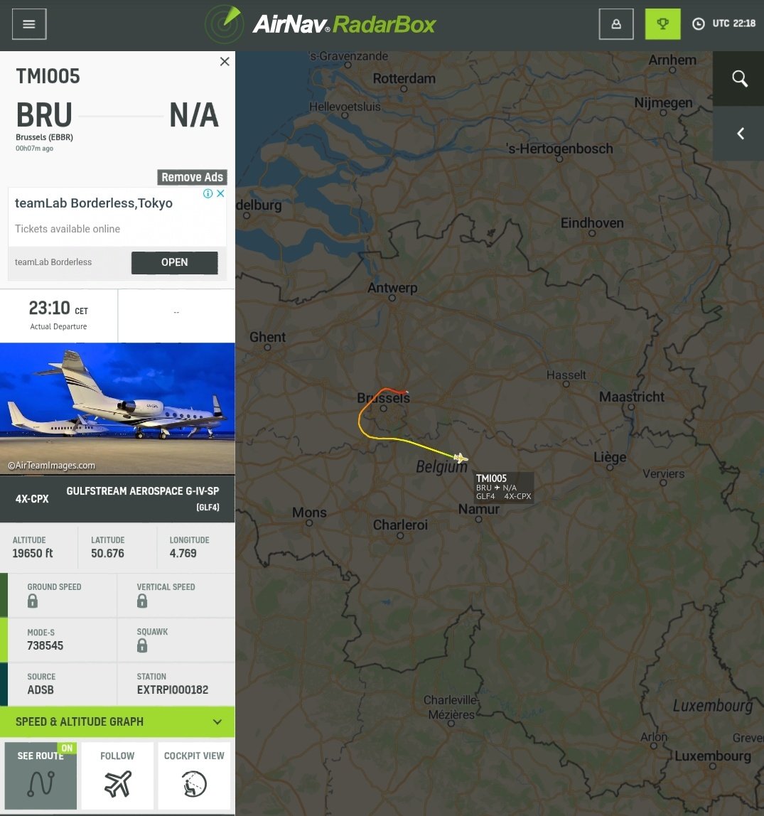 President Mahmoud Abbas's plane (T7-PAL) landed in Rome.