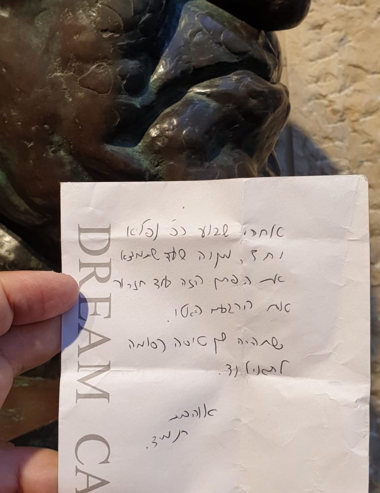 פתק חדש התגלה קודם בתוך פסלו של דוד בן גוריון בטרמינל 3 בנתב"ג: "אחרי שבוע כל כך נפלא יחד..."