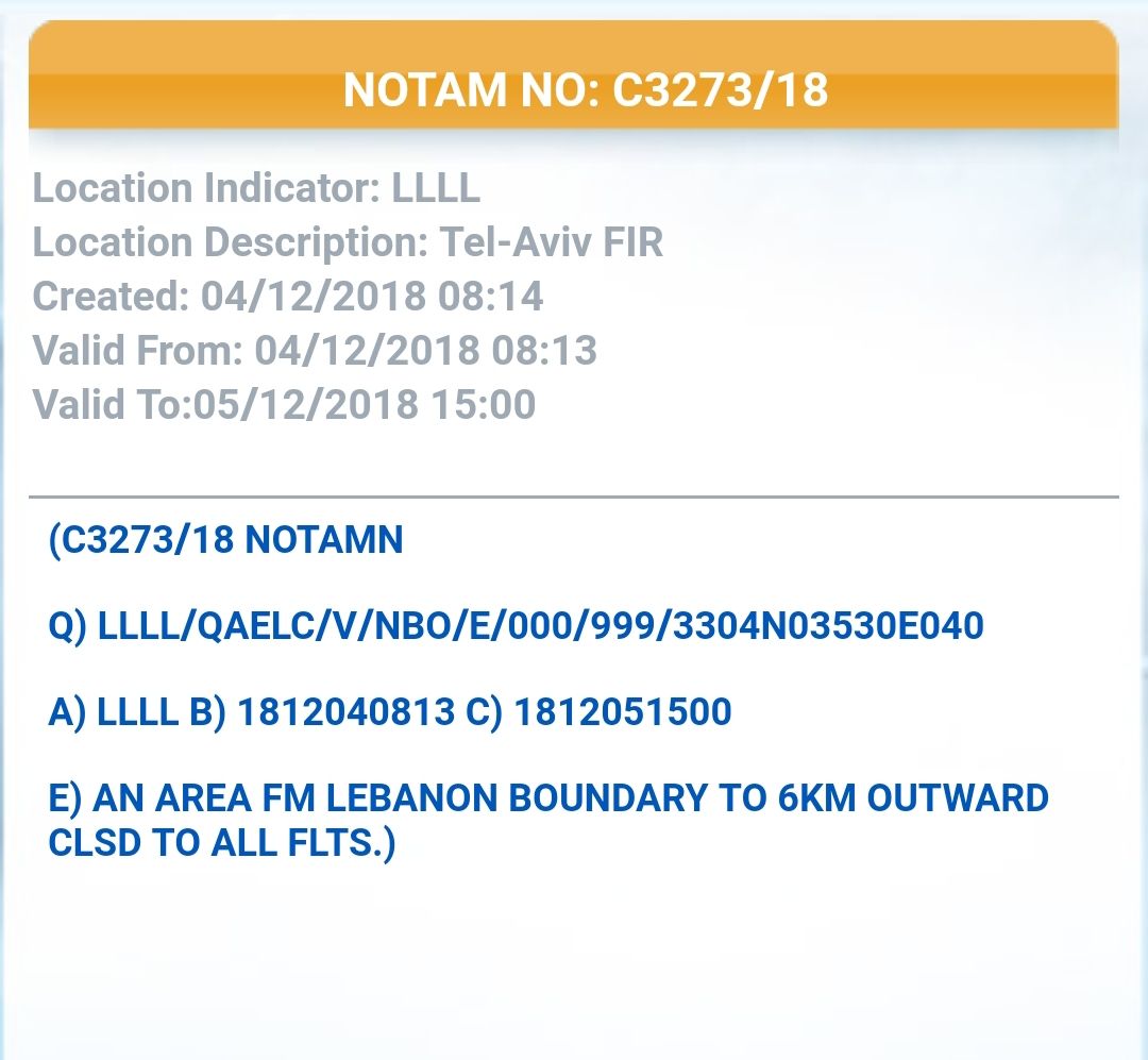 "מגן צפוני": השטח האווירי הישראלי בגבול ישראל- לבנון, -6 ק"מ מהגדר, נסגר הבוקר לטיסות אזרחיות. ההנחיה שפורסמה תקפה כרגע עד מחר אחרי הצהריים.
