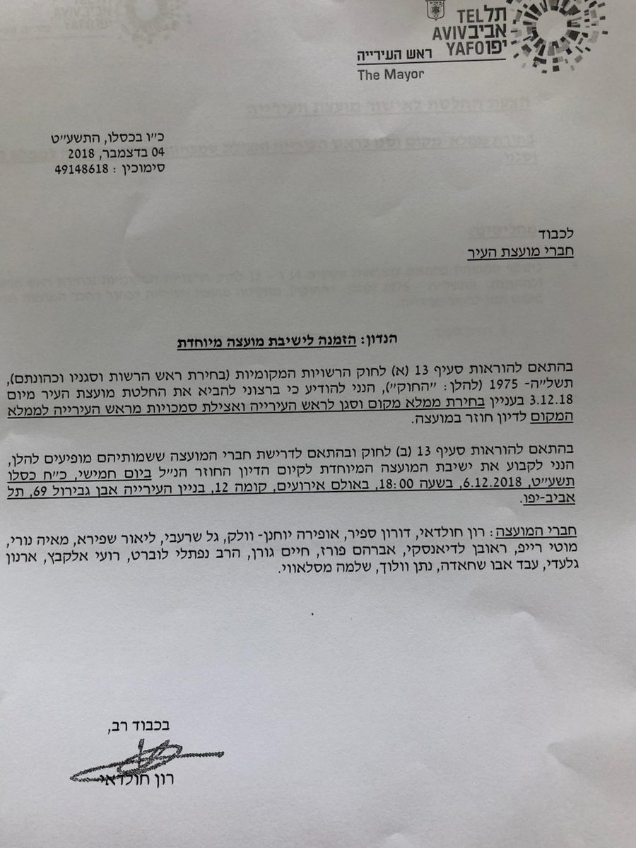 ראש עיריית ת"א, רון חולדאי, פתח הערב (ה') את ישיבת המועצה בביצוע מעניין (נתון לפרשנות) לשיר מעוז צור ישועתי. בלי קשר, מקסים בעיני חבר המועצה חיים גורן ("מאמינים"), שבא כבר בפעם השנייה לישיבת מועצה עם ביתו הפעוטה. חג חנוכה שמח!