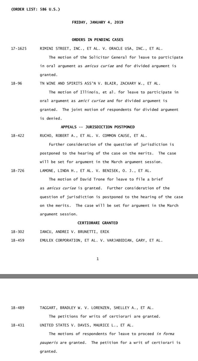 #SCOTUS will be hearing the partisan gerrymandering cases in March, the court ordered on Friday, as well as granting review in four other new cases.pic.twitter.com/4RalKqaeRe