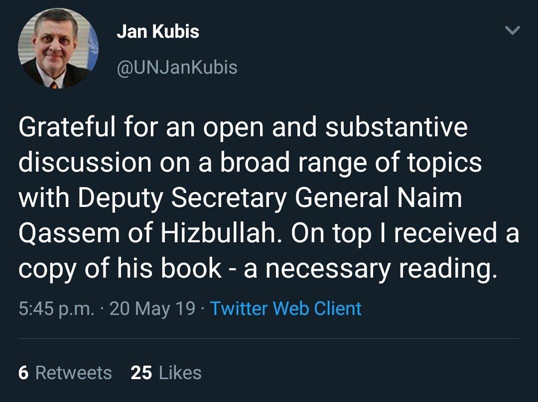 @UN official recommended a book by the Deputy Secretary of Hezbollah... I wonder which one comes next? Hitler's "Mein Kampf" or "The Protocols of the Elders of Zion"?pic.twitter.com/6Giv0NO628