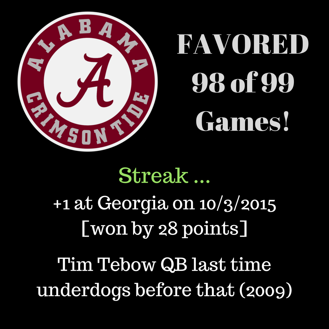 Alabama -7.5 over Florida State Crimson Tide FAVORED for 98th time in last 99 games!
