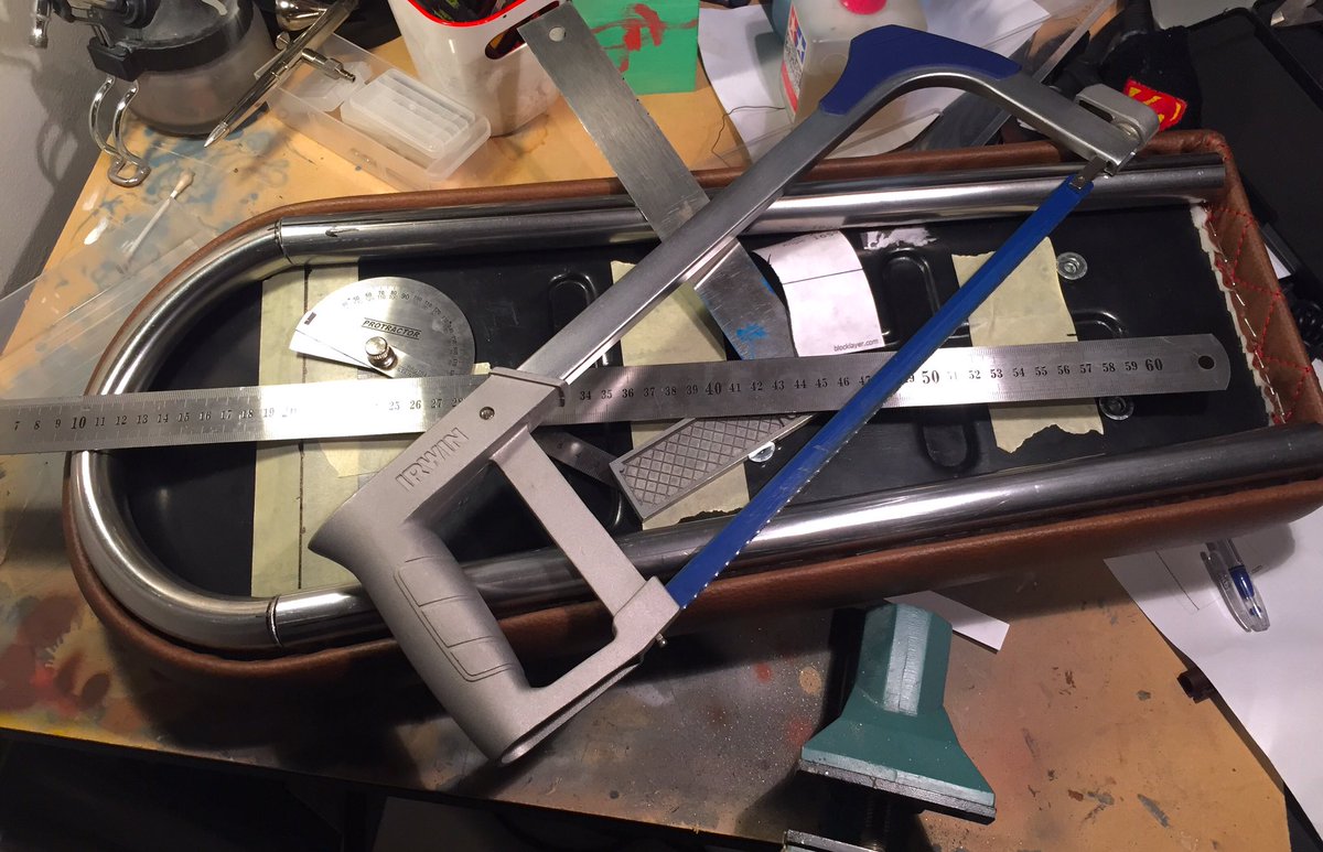 Phew! Managed to do couple pretty accurate 15 degree cuts to pipes under the seat using just hand held tools. Pretty nerve wracking I'd say.pic.twitter.com/86ryFR8CFJ