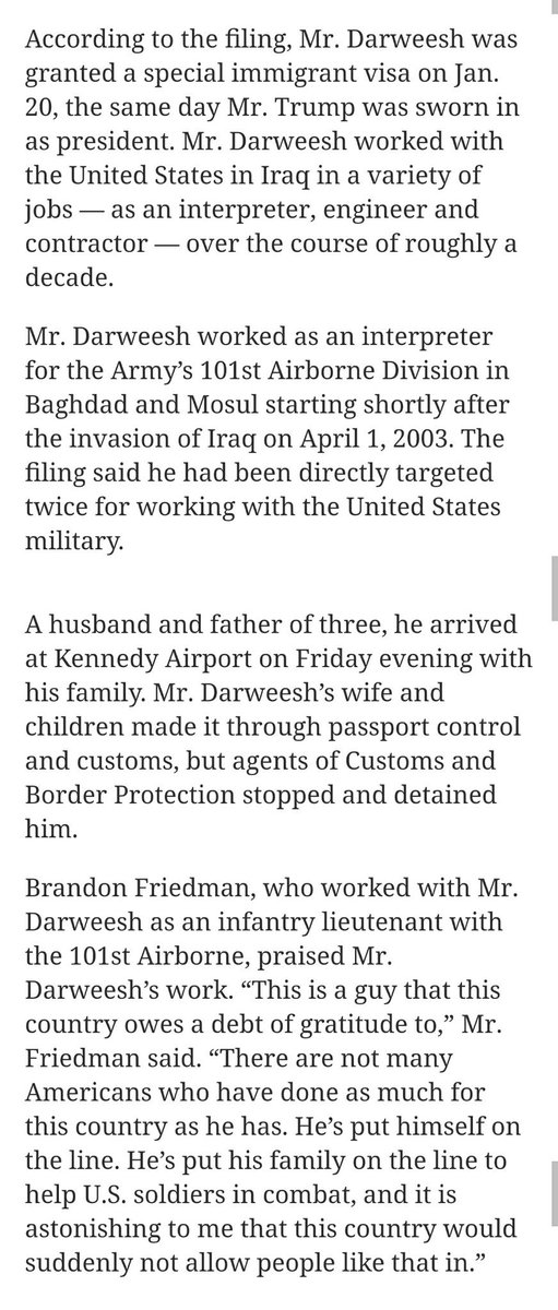 Hameed Khalid Darweesh "put his family on the line to help U.S. soldiers in combat." Detained at JFK. https://mobile.nytimes.com/2017/01/28/us/refugees-detained-at-us-airports-prompting-legal-challenges-to-trumps-immigration-order.html?_r=0&referer= …pic.twitter.com/xnJrPgDklQ