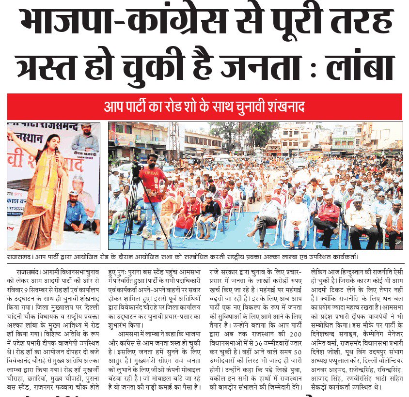 @LambaAlka@AAPRajasthan का रोड शो के साथ चुनावी शंखनाद।@BajpaiDeepak@AamAadmiPartypic.twitter.com/IoeIG2YwEB