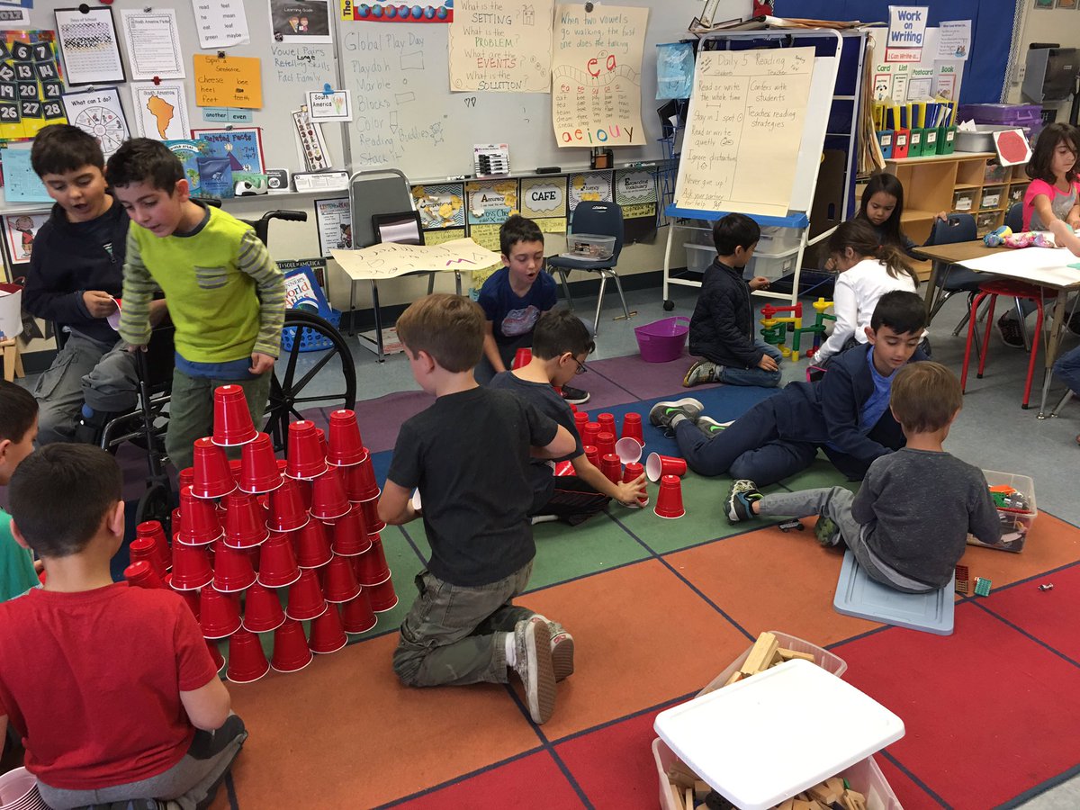 1st grade Ss use teamwork to solve ELA and map clues in order to unlock the Breakout EDU box.