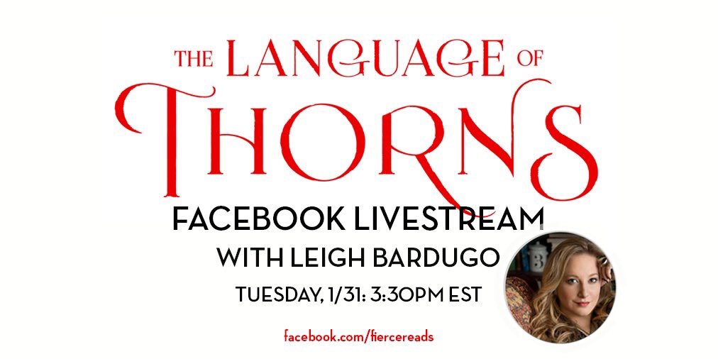 AND will be on Fierce Reads' FB LIVE today @ 3:30p! Tweet your questions for Leigh @ us w --maybe she'll answer live!