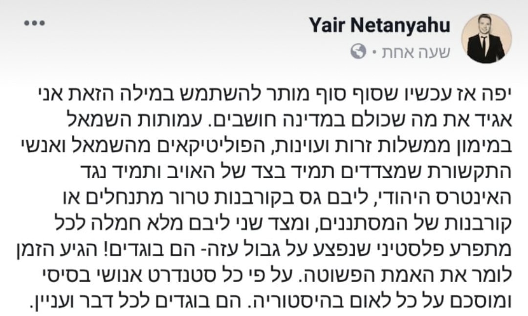 יאיר לפיד, הגיע הזמן להסיר את המסכות ואת החיוכים המזויפים: אם אתה כעת לא מודיע שלא תשב בממשלתו של החשוד - עליך לפרוש מהחיים הפוליטיים. גם לריקנות הערכית שאתה משדר צריך להיות גבול!pic.twitter.com/H9SQOL4uTS
