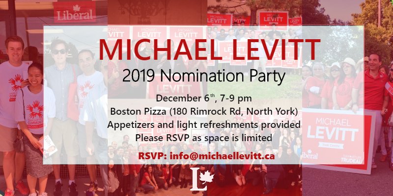 @liberal_party candidate for#YorkCentre. On December 6th, join us for my nomination party to celebrate our hard work over these past three years and build the team for the year ahead. RSVP: https://bit.ly/2TSxzVZ pic.twitter.com/WLLVm8EwPK