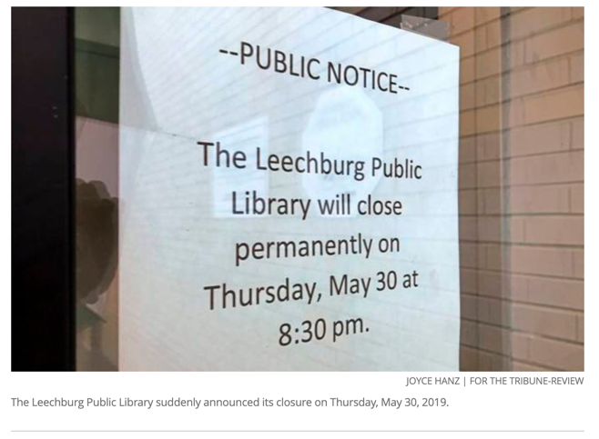 Pennsylvania: "Community Shocked To Hear Leechburg Public Library Closed For Good" (via TribLive)