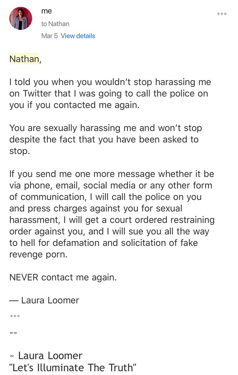 @Ocasio2018, Why is your friend & roommate@nathanTbernard sexually harassing me? I asked him to leave me alone SEVERAL times. Here is an email he sent me last month about “career opportunities” insinuating I should get a job in porn after he accused me of having a sex tape.pic.twitter.com/cdfcOGgGQw