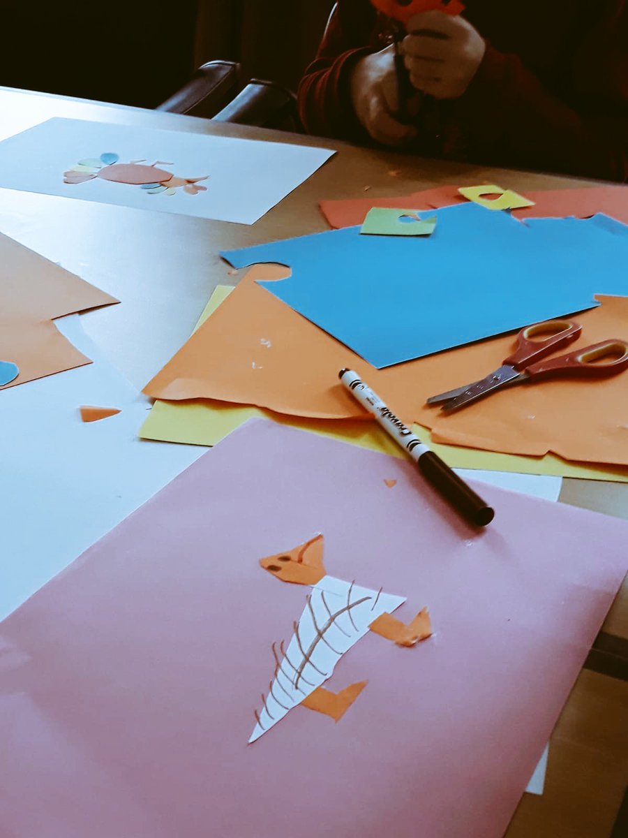 @SouthKenKids Fest with children creating collage animals and creatures in a workshop with and inspired by@chrishaughton@ifru_londonpic.twitter.com/QNEJgRj59K