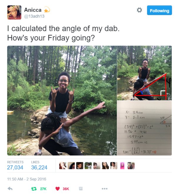 @13adh13 flawlessly calculating the angle of her dab!#legend#womeninmathpic.twitter.com/6sXvdz9Xlg