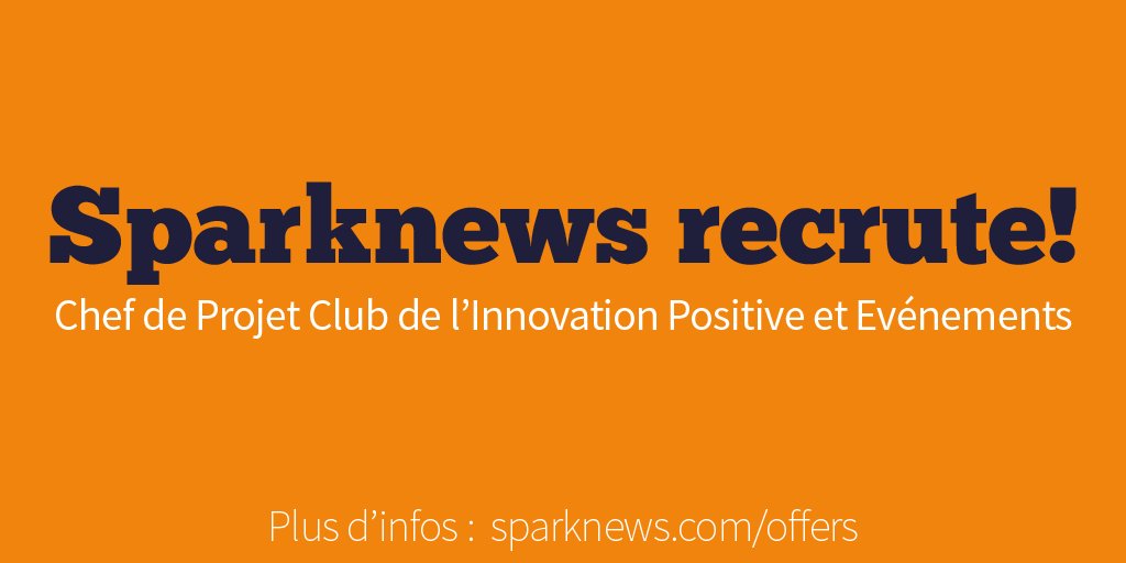 [Stage] Chef de projet Club de l’Innovation Positive et Evénements. Sparknews recrute un.e super stagiaire pour continuer d'amplifier les transformations positives de notre société! Envoie-nous ta candidature!