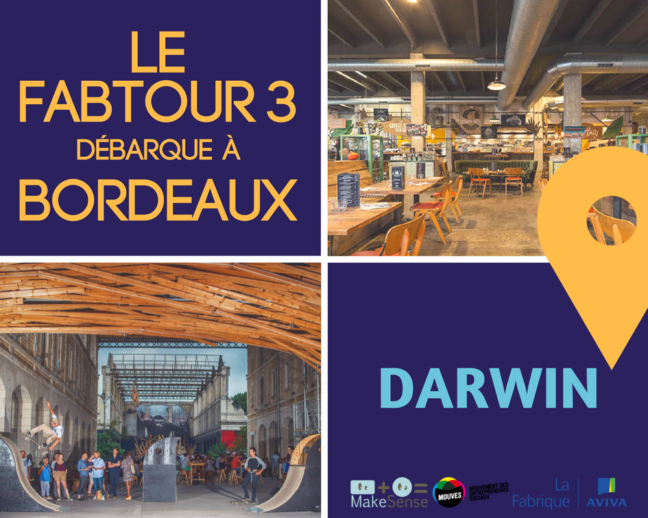 #Fabtour#Bordeaux@DarwinBdx ! Au menu, Ateliers, Débat, Concert, Networking... On espère vous y voir @LaRucheBordeaux@Fidaquitaine@Inria_Bordeaux@Bxeco ! cc @lemouves_ES@kawaa_co@lafabriqueaviva INCRIPTIONS >>> https://buff.ly/2BPRhc8 pic.twitter.com/CHvjGCy4lI