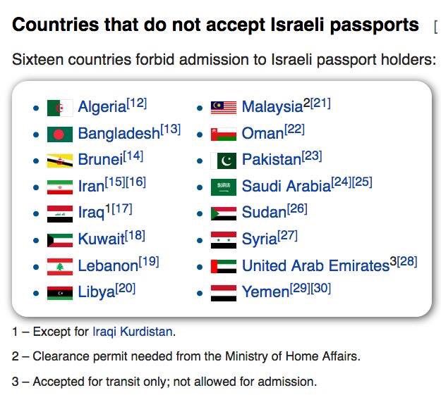 These countries have long held a ban on citizens from the world's only Jewish country. Not b/c of potential terror threat. Just b/c of hate.pic.twitter.com/s45zm5rtG1