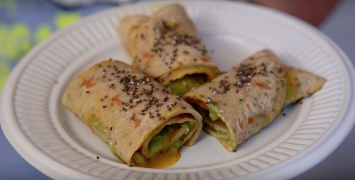 7. Pancakes are great for breakfast, lunch or dinner. Check out 's recipe w/ avocado + honey
