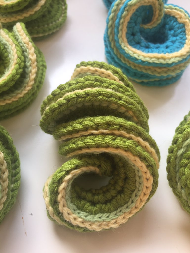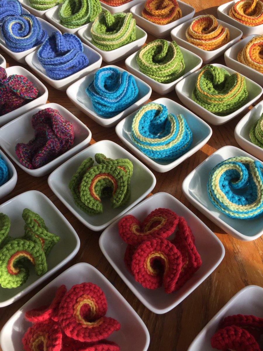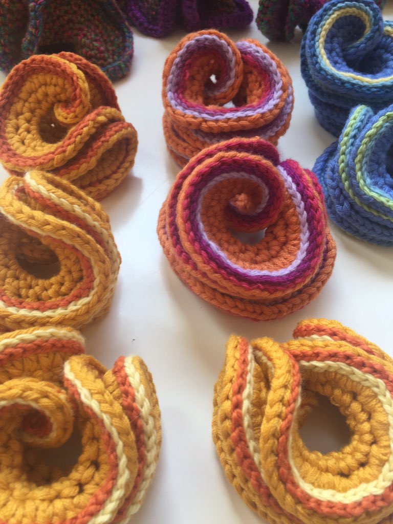 Doing my first Art/Craft fair next Saturday! Big & small infinity loops, little corals & baby hyperbolic planes!