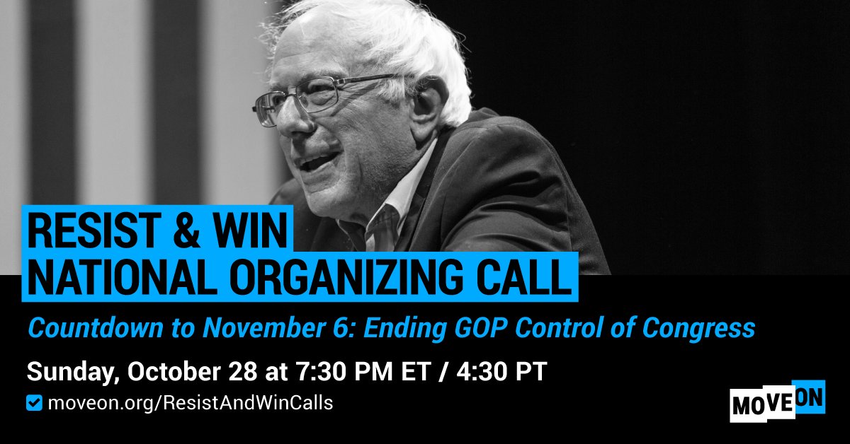 @SenSanders & progressive leaders on the#ResistAndWin National Organizing call, where we'll talk about how to make the most of these last weeks before#ElectionDay. RSVP here: http://moveon.org/resistandwincalls …pic.twitter.com/2ETh6ufdrl
