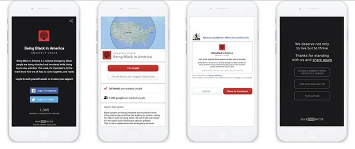 launched "safety check" tool allowing users to mark themselves "unsafe" for being black in America http://bit.ly/2iJiPoE pic.twitter.com/KpFM2HQiOA
