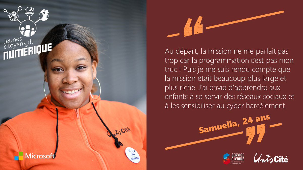 Samuella témoigne de la richesse du programme et de son envie de transmettre ses connaissances aux plus jeunes ! C'est tout le sens de l'engagement du programme "Jeunes Citoyens du numérique"