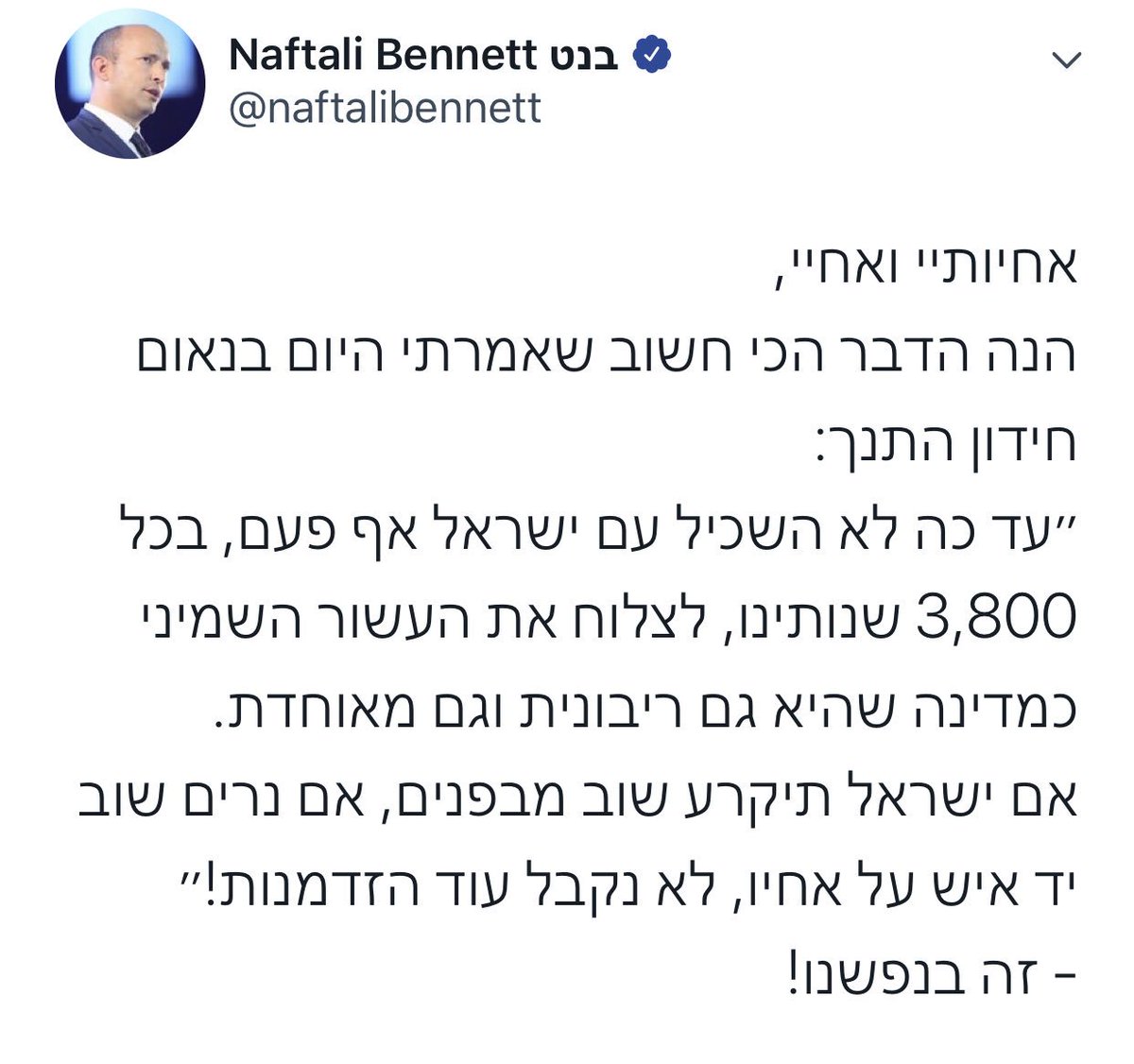 איזה בנט קיבלנו היום? זה שקורא לאחדות, או זה שקורא להרביץ להורים שכולים?pic.twitter.com/uX9ytZMjII