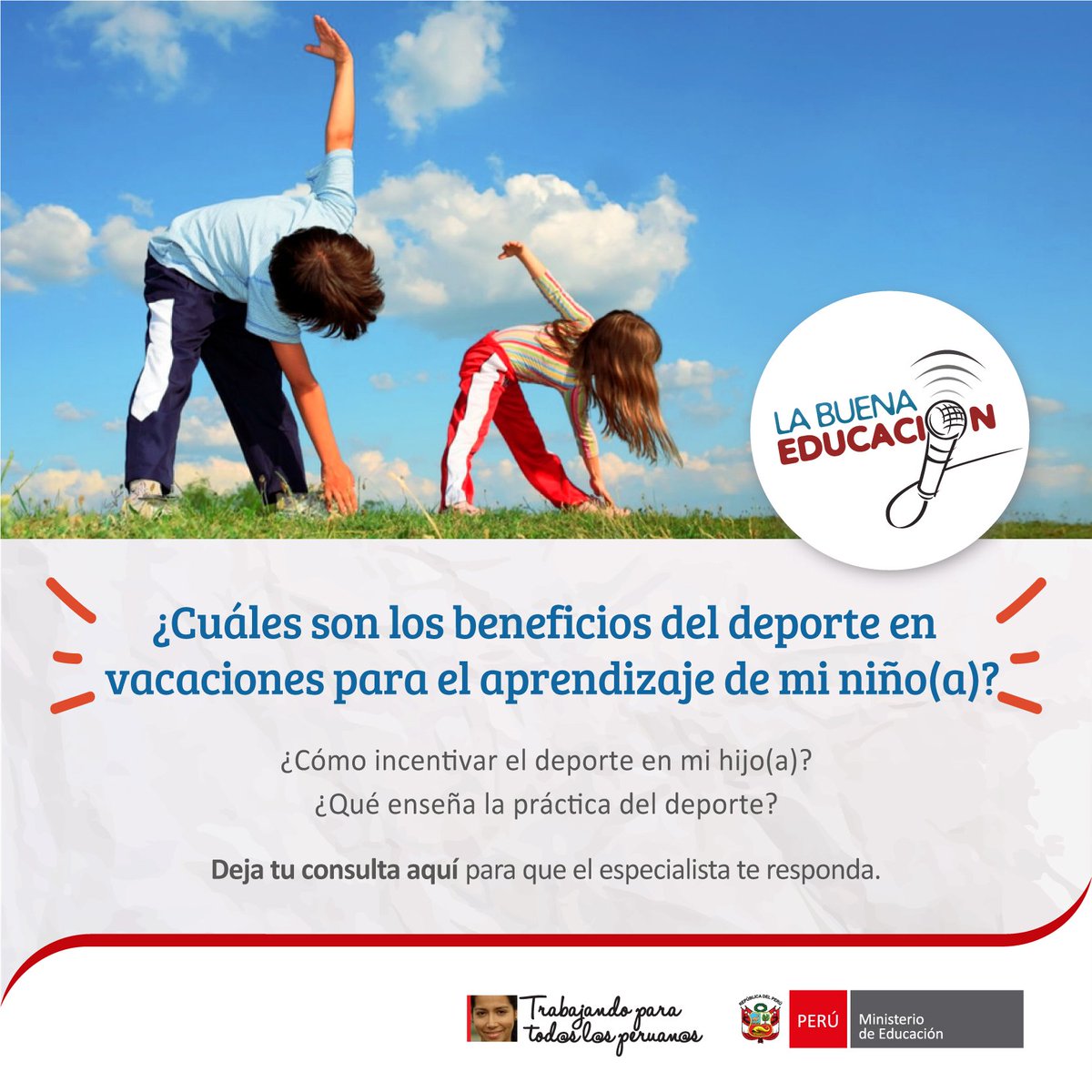 #ConsultorioLBE, hablaremos sobre cómo beneficia el deporte a mi niño o niña. Escribe tu consulta aquí:pic.twitter.com/eZShdJNGvq