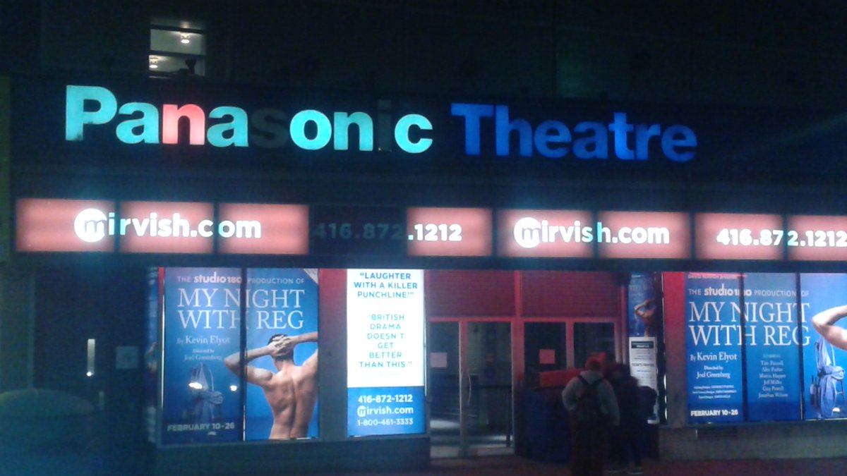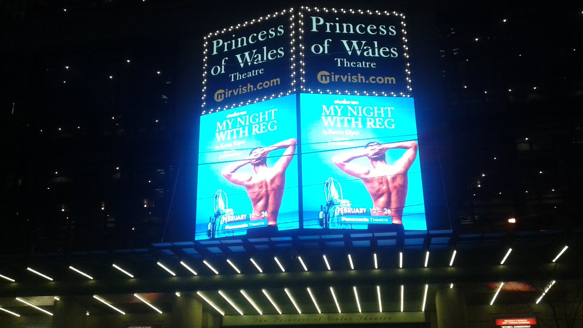 Wow, that Reg guy gets around. Here he is, illuminated above the Princess of Wales Theatre.