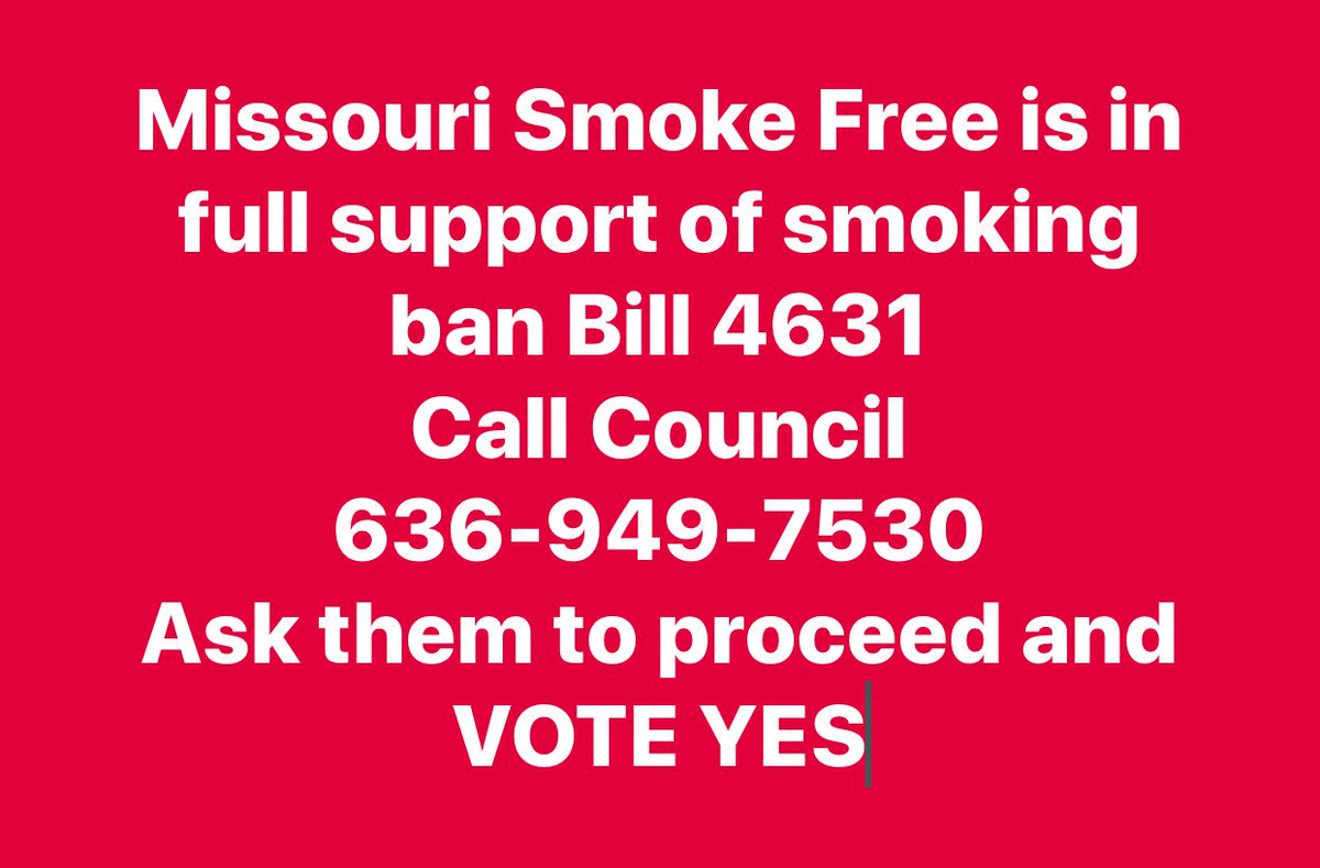 Missouri Smoke Free urges voters to vote NO on misleading “smoking” ban ballot initiatives in St. Charles and St. Louis Counties