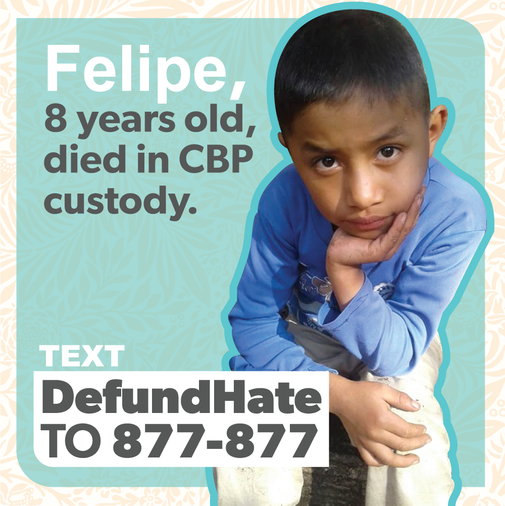 Felipe Gomez, an 8-year old Guatemalan child, died at the hands of Border Patrol, CBP. Congress should NOT give Trump any more money for ICE, CBP, or his border wall. NO to $5 billion, NO to $1.3 billion. ☎️ CALL Congress and demand they : 210-702-3059