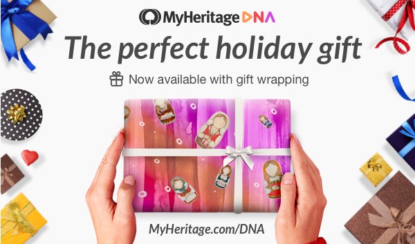 Give your loved ones the ultimate gift of a MyHeritage DNA test this holiday season! Now available with gift wrap! Don't miss our Cyber Monday Sale! http://ht.ly/2fTM30mJWyg pic.twitter.com/CRHAGNzjpj