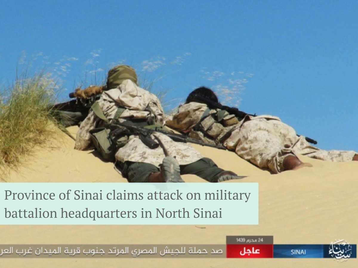 Islamic State-affiliated militant group Province of Sinai alleged that it had carried out an armed attack on the headquarters of ’s Armed Forces Battalion 101 in North ’s on Thursday