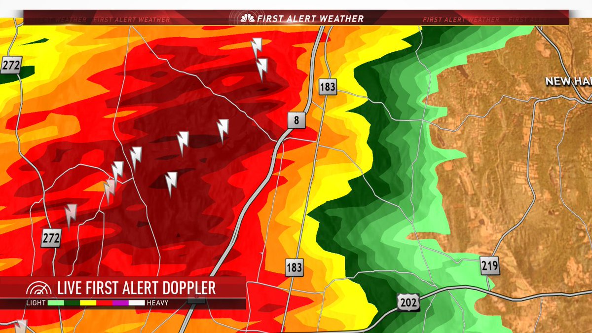 #FIRSTALERT: Severe Thunderstorm Warning in effect for#Litchfield and#Fairfield counties. Live coverage here http://nbcct.co/RX2UNja pic.twitter.com/kqREsyQFFO