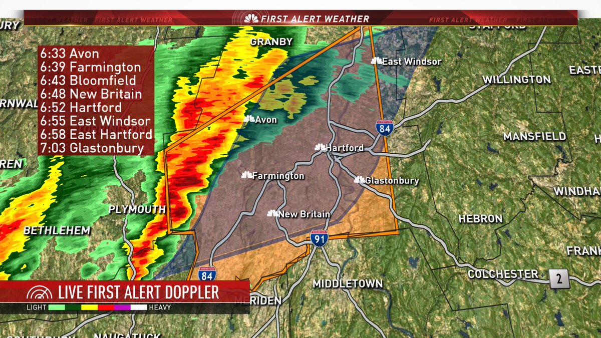 Severe Thunderstorm Warning for parts of Hartford county. Damaging winds possible.
