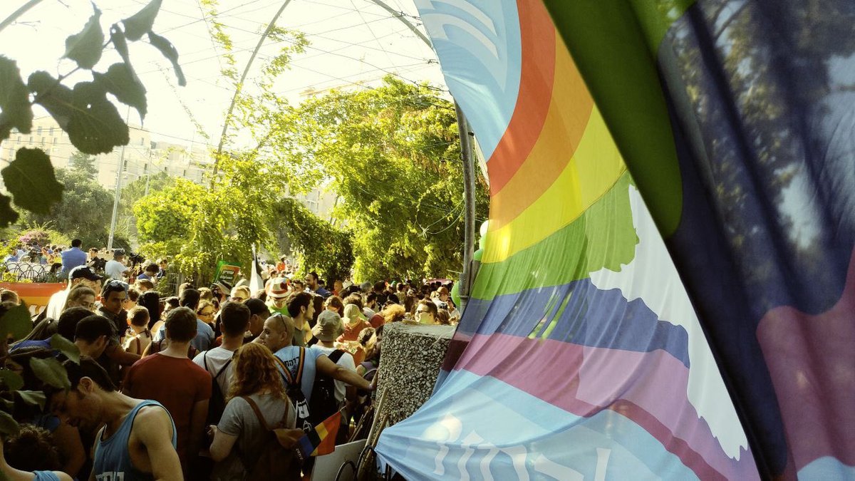 תמונות ראשונות ממצעד הגאווה, הסובלנות והמחאה בירושליים. בהנחה ובתקווה שתיכף נהיה כל כך הרבה עד שלא נוכל לצייץ ולהעלות תמונות. בואו!pic.twitter.com/ZWg1LDgRyt
