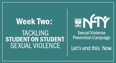 "As NFTYites, we play a role in addressing sexual violence. We are social justice advocates, and we stand up for human rights & equality.” As we wrap up week 2 of NFTY’s Sexual Violence Prevention Campaign, learn about student-on-student sexual violence: