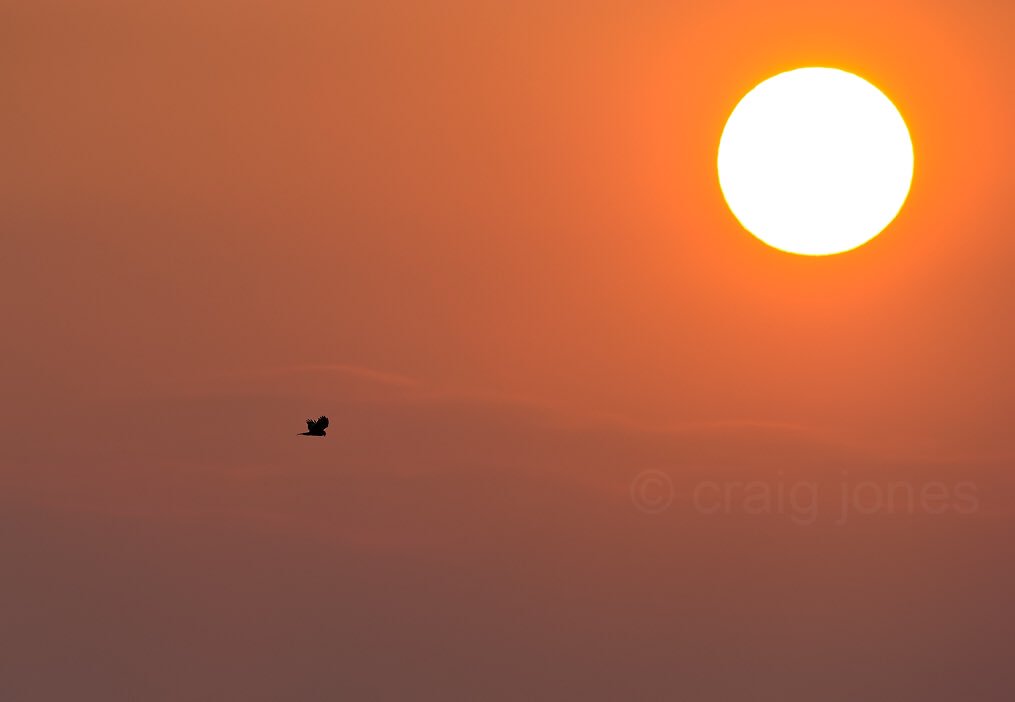 A lone Marsh Harrier flying towards the setting winter sun in Norfolk. This part of the UK is a real stronghold for these gorgeous birds of prey.