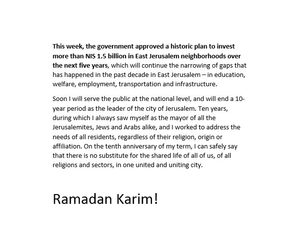 #Ramadan begins. As I conclude 10 years as Mayor of all of the residents of#Jerusalem, I wanted to share a special message with all those celebrating. May this month of#Ramadan bring peace upon us all! https://www.facebook.com/NirBarkatArabic/videos/877144309136721/ …pic.twitter.com/ImEuMod0ML