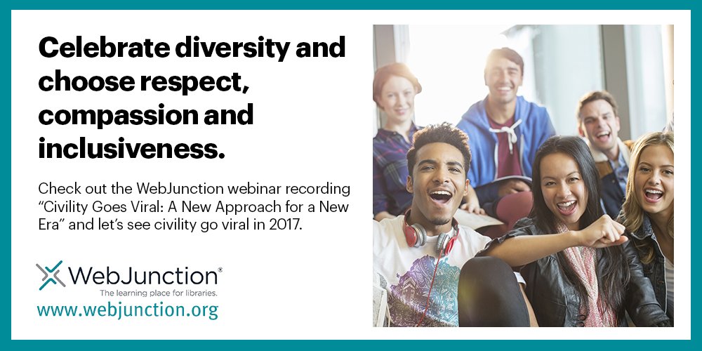 #WebJunctionWedensday post and find opportunities to implement Choose Civility initiatives http://bddy.me/2u9IYEc pic.twitter.com/YVOaGOj9tV