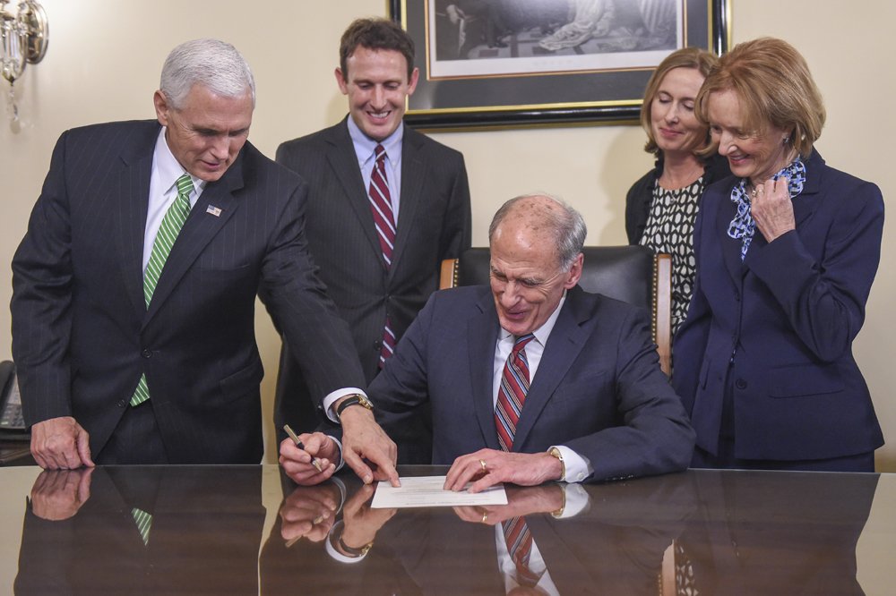 Vice President Mike Pence assists newly confirmed DNI Dan Coats during his swearing-in ceremony at the U.S. Capitol.pic.twitter.com/jb6BJP6HaL