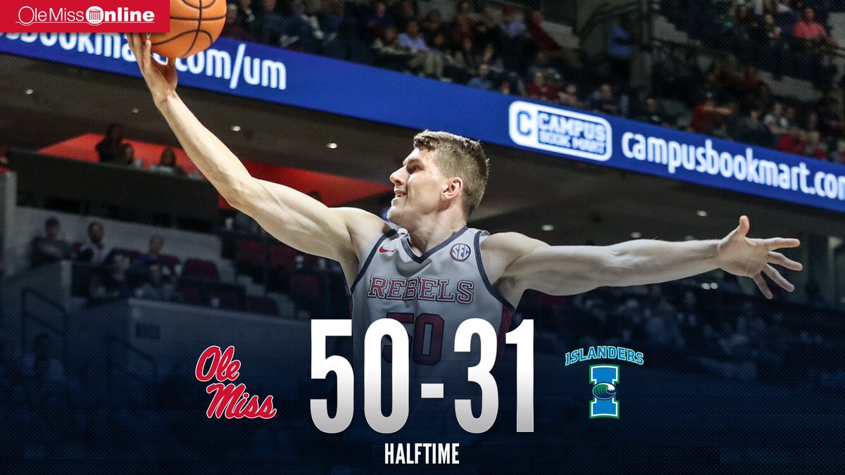 The Rebels score a season-high 50 first half points with the help of nine 3s to hold a 19-point cushion over Texas A&M-Corpus Christi.pic.twitter.com/LOMeoqw5wb