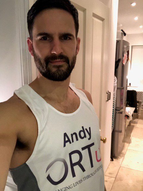 @ORT_UK!! We can't wait to cheer on our runners@LondonMarathon. Here's team member Andy, gearing up for the big run. To sponsor our sublime seven, head to https://mydonate.bt.com/teams/ortuk#LondonMarathon