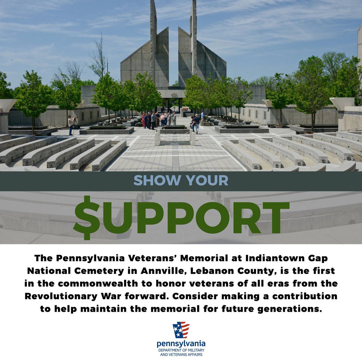 The PA Veterans’ Memorial, located at Indiantown Gap Nat'l Cemetery stands as a lasting tribute to those who served our state and nation in times of war and peace. The annual